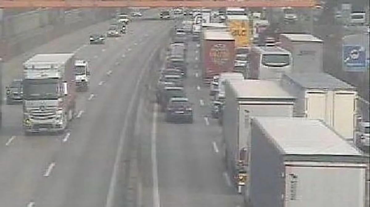 Unfall auf der Pyhrnautobahn kurz vor Graz, nur ein Fahrstreifen war frei. Stau hat sich wieder aufgelöst.