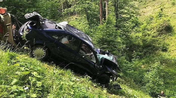 Pkw stürzte 30 Meter in Schlucht und schlug in Gegenhang ein