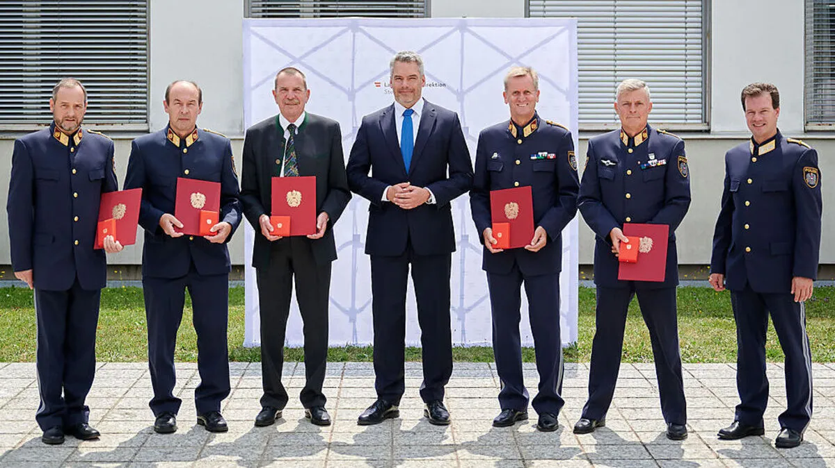 Im Rahmen eines Besuchs in Graz verlieh Bundesminister Karl Nehammer mehrere Auszeichnungen an verdiente Polizeibeamte.