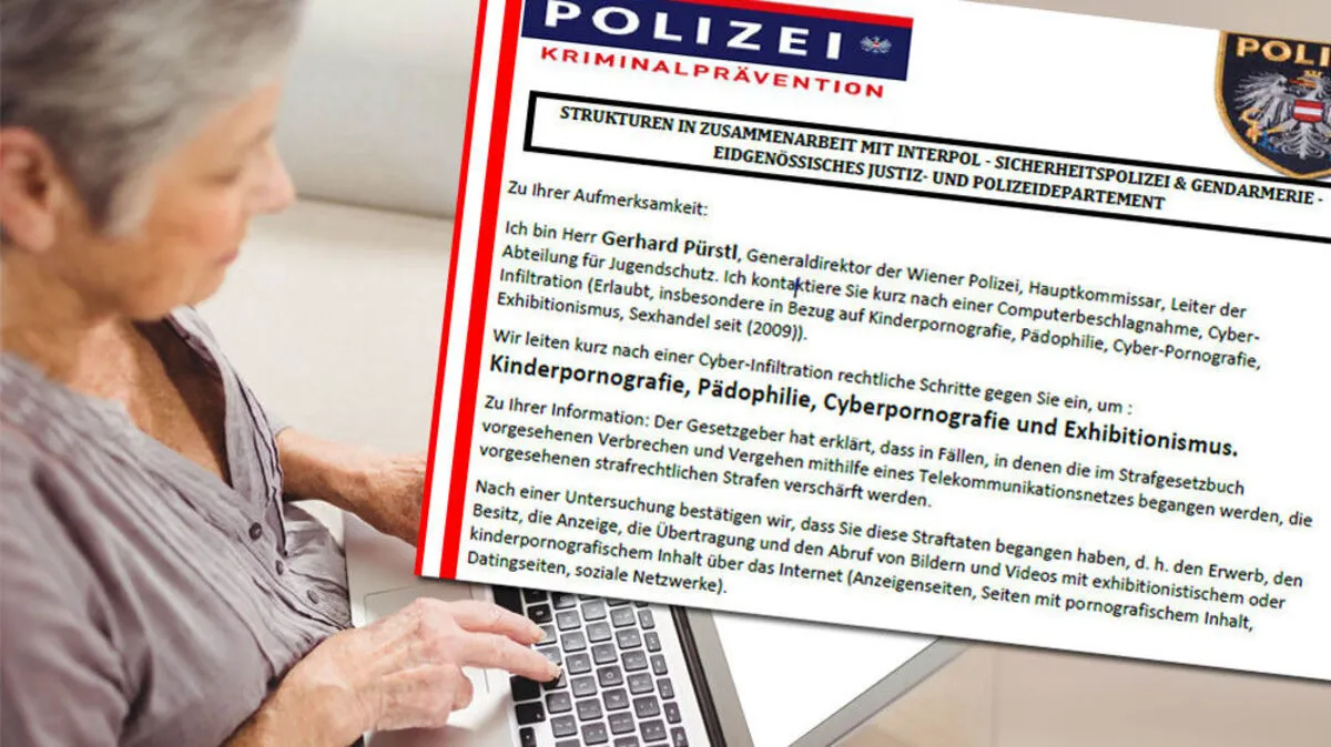 Die Frau erhielt ein plump gefälschtes Schreiben: Das  Computersystem der Steirerin sei gehackt worden und sie bei sexuellen Handlungen aufgenommen