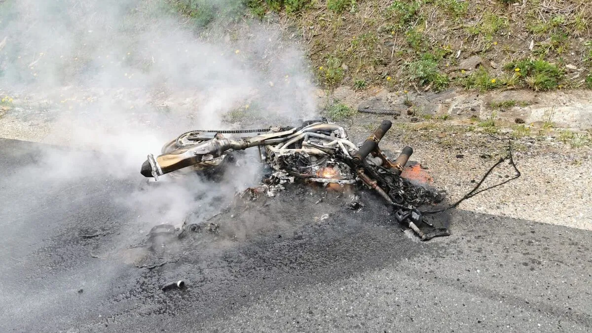 Drei Motorräder in Unfall verwickelt, eines ging in Flammen auf