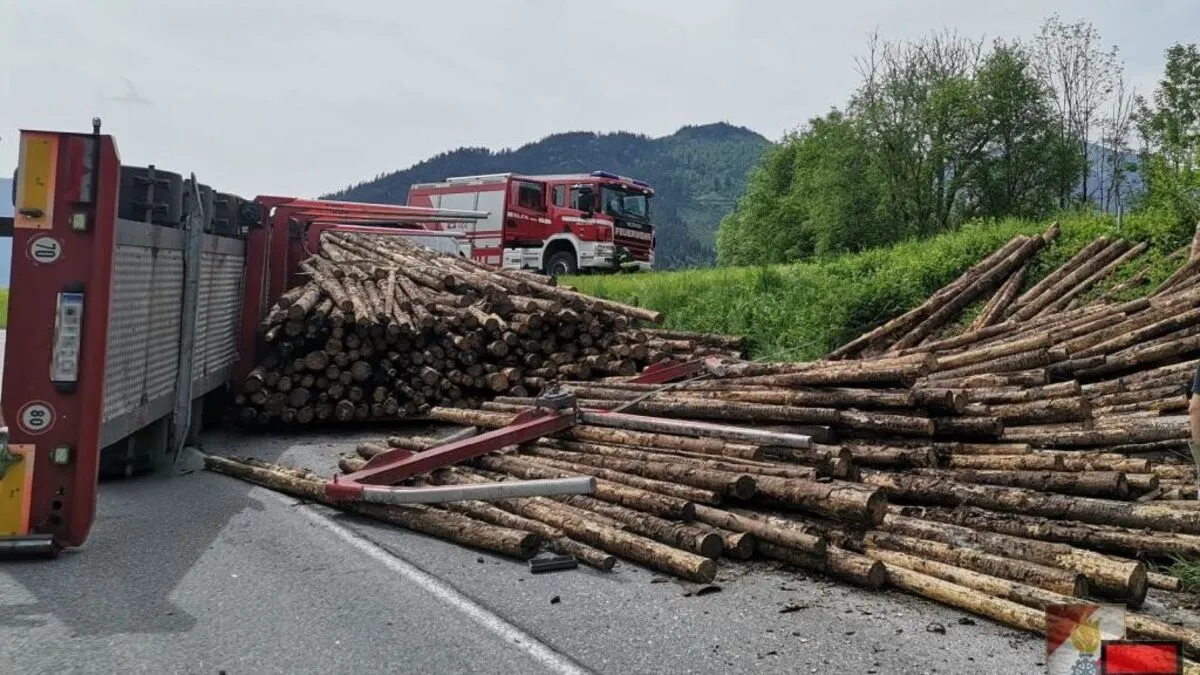 In einer Kurve der B 117 bei Admont stieß am Montag ein Holztransporter seitlich mit einem anderen Lkw zusammen. Dessen Lenker fuhr weiter, der 45-jährige Fahrer des Transporters wurde in der Fahrerkabine eingeklemmt.