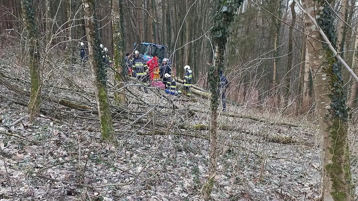 Mann bei Holzarbeiten von herabfallendem Baum am Kopf getroffen