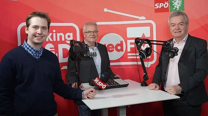 SPÖ-Obmann Anton Lang, Günter Pirker und Manuel Windholz von "redFM"
