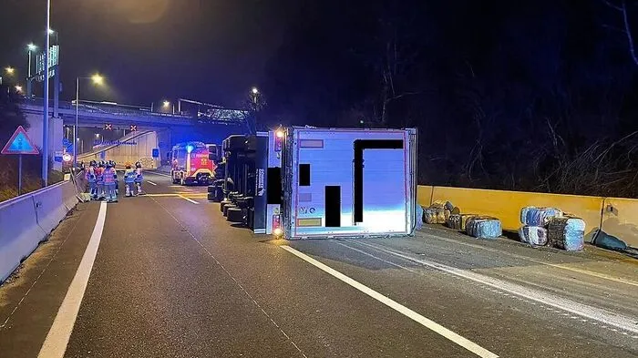 Lkw umgekippt