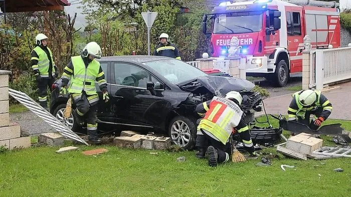 25 Einsatzkräfte der Feuerwehr, sowie das Rote Kreuz und die Polizei mussten am Donnerstagabend ausrücken. Ein Autofahrer kam in Spielberg von der Straße ab und krachte in den Gartenzaun eines Einfamilienhauses.