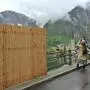 Der provisorische Sichtschutz für Hallstatts beliebtestes Fotomotiv wurde wieder abgebaut. Stattdessen soll ein markantes Transparent Touristen um mehr Ruhe bitten.