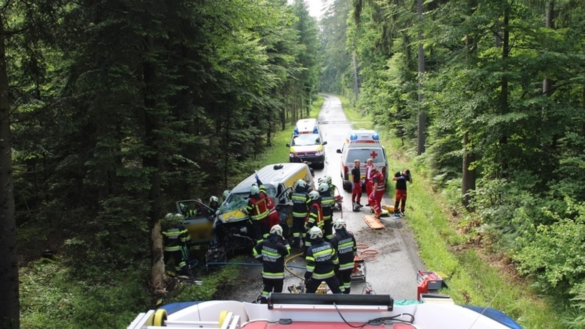 Schwerer Verkehrsunfall in Hartl im Bezirk Hartberg-Fürstenfeld: Ein 44-jähriger Brotzusteller prallte mit seinem Lieferwagen gegen einen Baum und wurde schwer verletzt.