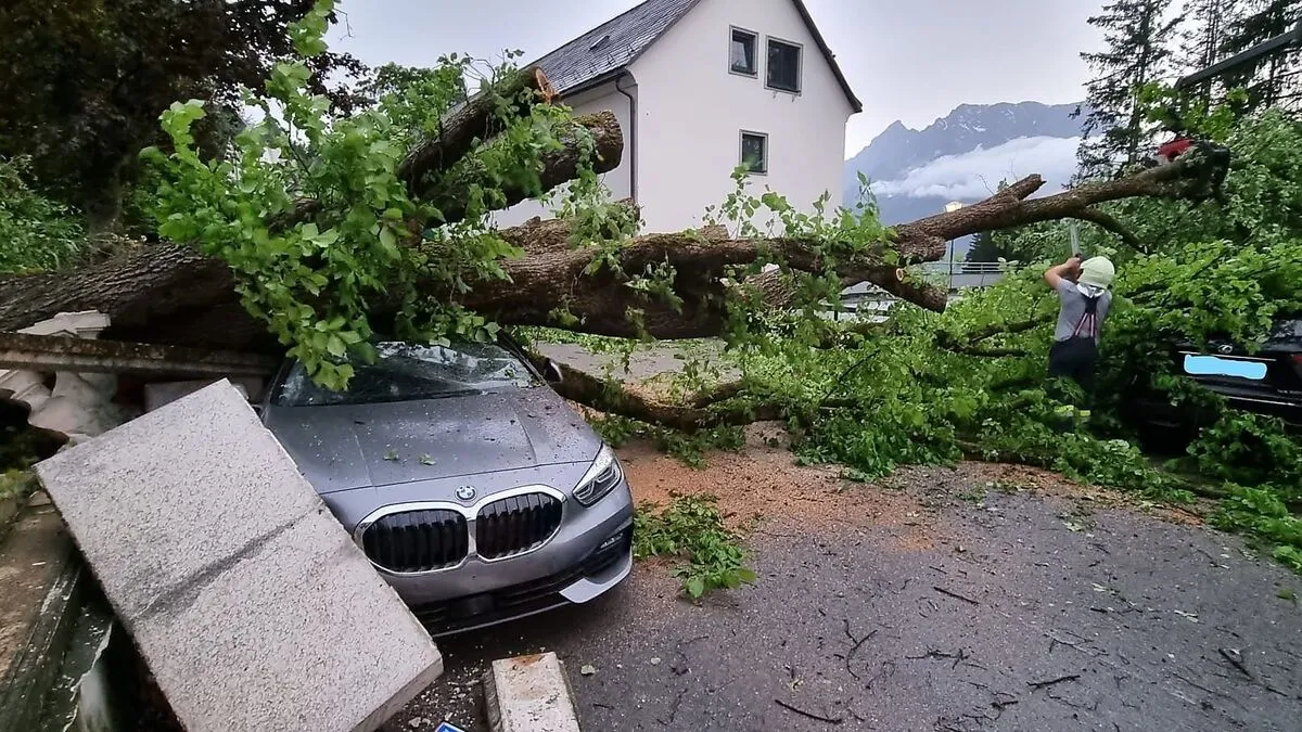 Hotel Pichlarn: Baum wurde entwurzelt und krachte auf Parkplatz