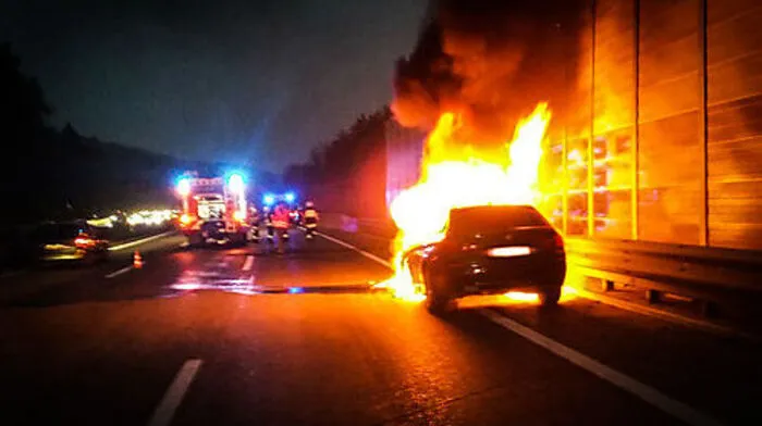 Auto brannte auf Autobahn lichterloh