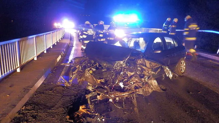 Mittwochnacht kollidierte ein 26-jähriger Fürstenfelder auf der L401 in Bad Blumau mit seinem Auto frontal mit einem Brückengeländer. Der Pkw wurde komplett zerstört, der Mann wurde leicht verletzt.