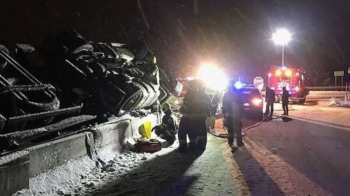 Sattelzug überschlug sich und landete hinter der Leitschiene