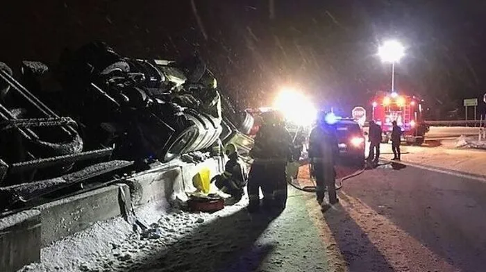 Ein Sattelzug überschlug sich bei Rottenmann, laut Alarmmeldung war eine Person eingeklemmt. Die Stadtfeuerwehr Rottenmann rückte umgehend aus. Bergung erst am Donnerstag.