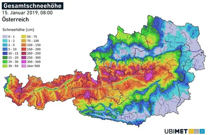 Dienstag, 13.30 Uhr: Die Neuschneemengen, die in den vergangenen 15 Tagen registriert worden sind, kommen selbst in den schneereichen Regionen Österreichs nur alle zehn bis 100 Jahre vor. Vereinzelt gab es sogar neue Rekorde - etwa in Bad Mitterndorf mit 270 Zentimetern, gemessen wird hier seit 1971.
