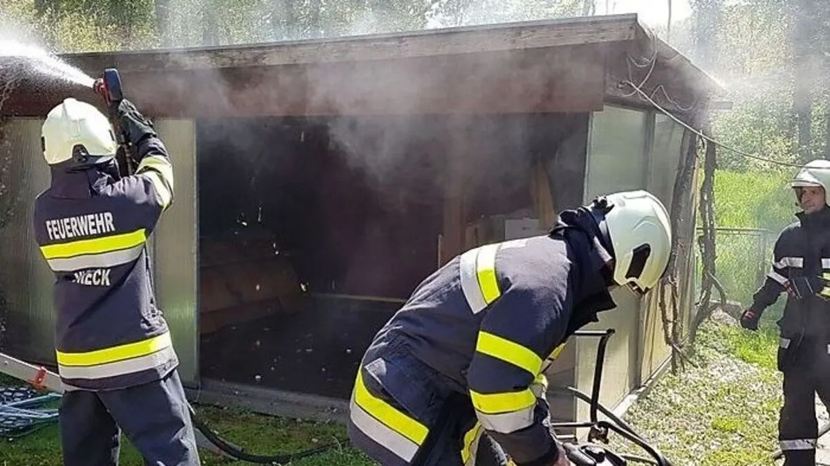 Feuer in Komposthaufen setzte Gartenhütte in Mureck in Brand