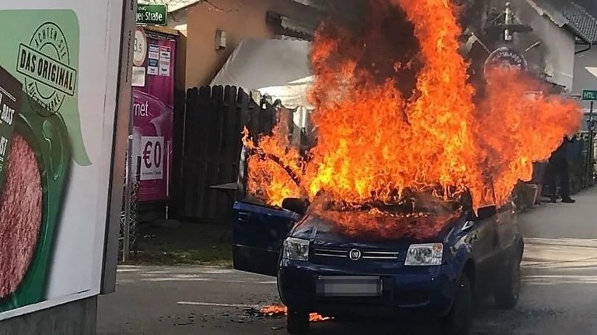 Aufsehenerregender Autobrand am Mittwoch in der Plabtuscherstraße. Die Autolenkerin erlitt Verbrennungen.
