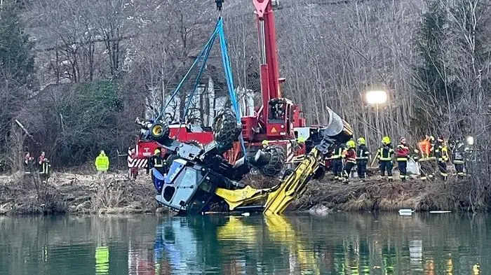 Der Bagger musste mit einem Kran aus der Enns gehoben werden