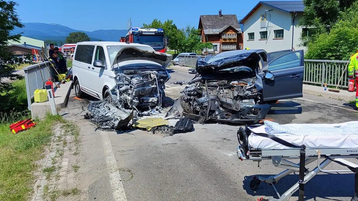Schwerer Verkehrsunfall im Bezirk Liezen: Zwei Pkw stießen auf der B 145, Höhe Bad Mitterndorf, frontal zusammen. Dabei wurden sechs Menschen verletzt. Drei davon, darunter zwei Kinder, wurden schwer verletzt.