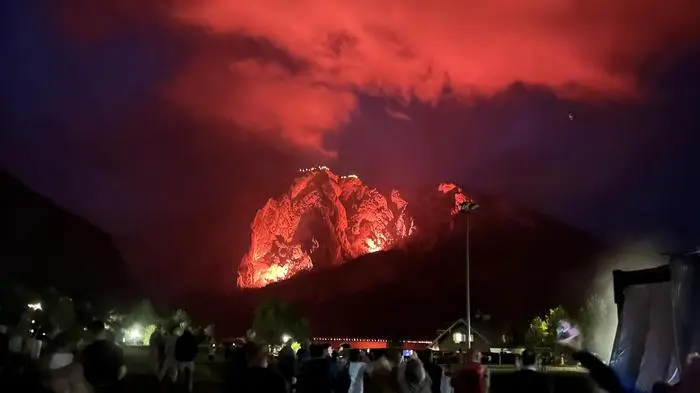 Lichtgewaltige Bengal-Feuer tauchten die Felsen in mystisches Rot. „Mystic Alpin“ von Fred Jaklitsch lieferte die Bühnenshow.