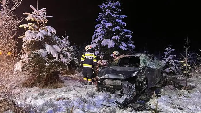 Die Feuerwehren Weng und Hall mussten in der Nacht auf Samstag zu dem Unfall in Buchau ausrücken, der Lenker wurde unbestimmten Grades verletzt.