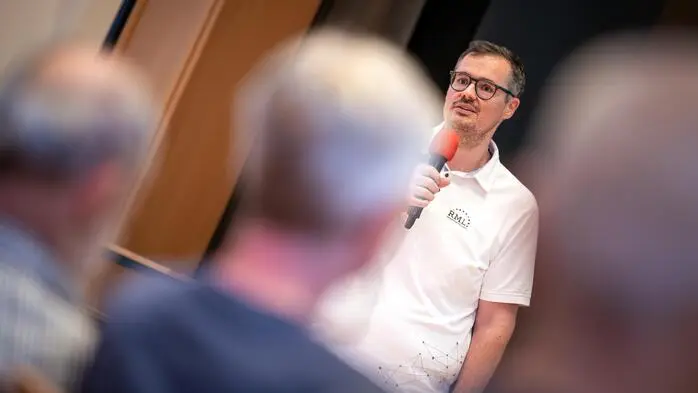 Philipp Röhm, Geschäftsführer der RML Infrastruktur, beim Glasfaser-Infoabend am 10. September in Öblarn