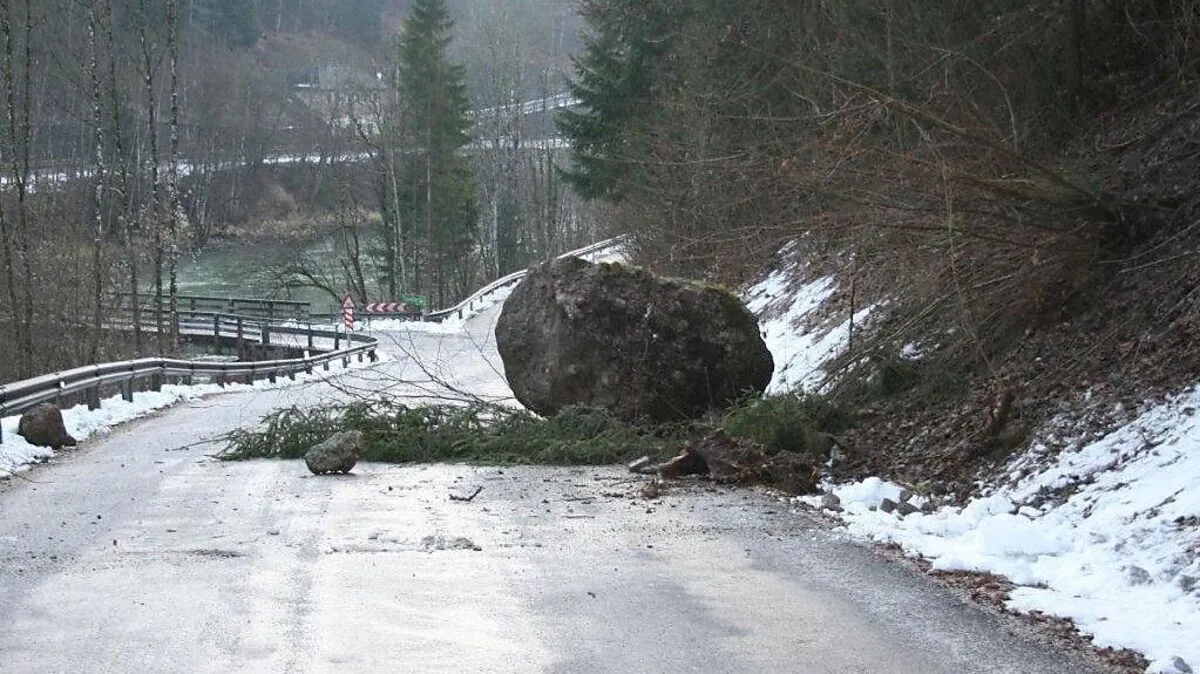 Ein fünf Kubikmeter großer Felsbrocken stürzte am Dienstag auf die Landesstraße 744 zwischen Kirchenlandl und Mooslandl. Ein Autofahrer entdeckte den Felsen um sieben Uhr Früh und alarmierte die Polizei.