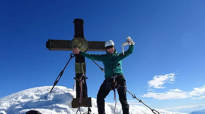 Nette Aktion: Lukas Hasitschka hat am Gipfel des Großglockners ein Fan-Versprechen vom Bodypainting-Festival Pörtschach eingelöst.