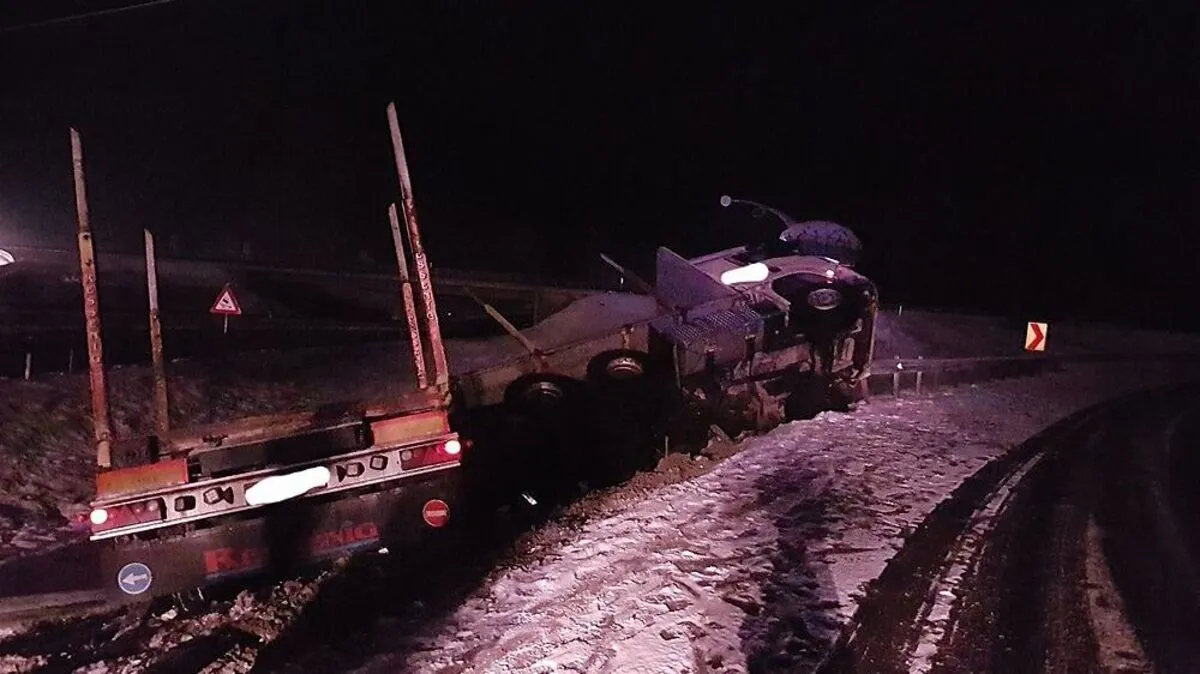 Auf der S6-Auffahrt Kapfenberg kam ein Sattelzug von der Fahrbahn ab