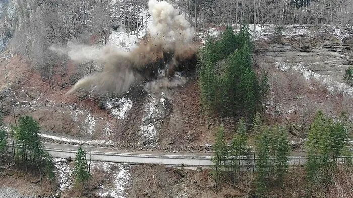 Sprengung erfolgreich, B 115 bald einspurig befahrbar