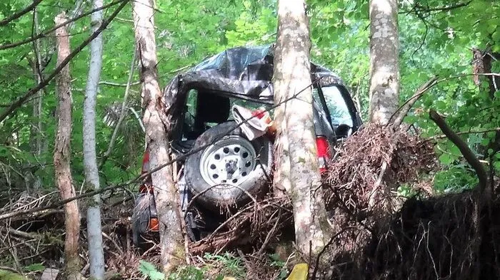 Der völlig zerstörte Klein-SUV an der Absturzstelle