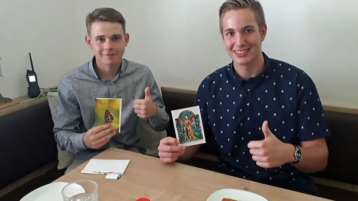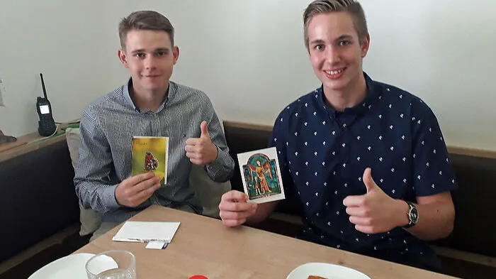 Julian Schuhleitner und Jonas Raffeiner auf der Polizeidienststelle in Landl mit den Dankesschreiben