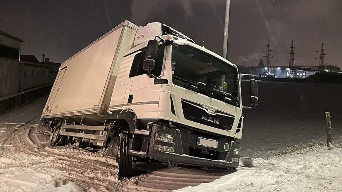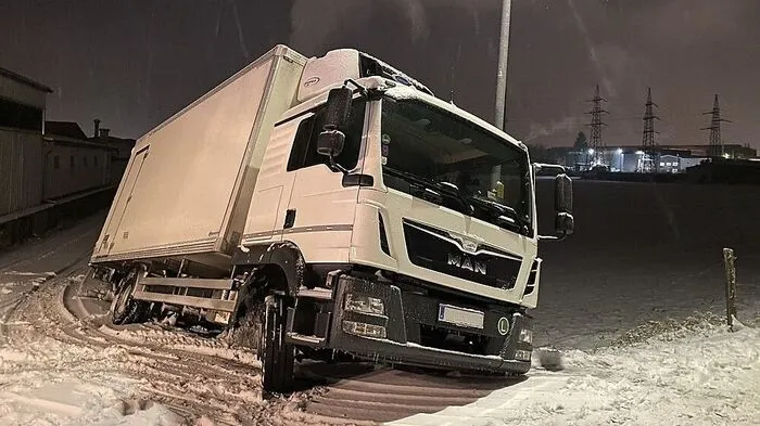 Kühl-Lkw rutschte in den Straßengraben