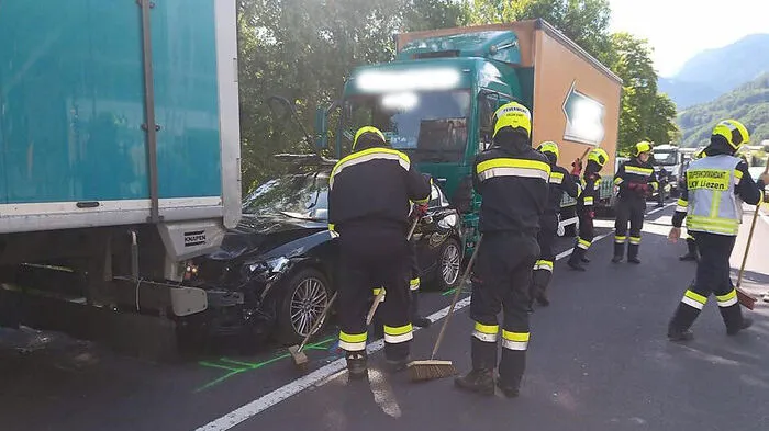 Ein Lkw konnte am Donnerstagabend auf der Ennstalstraße nicht mehr rechtzeitig hinter einer Kolonne halten. Es kam zu einem Auffahrunfall. Feuerwehr, Polizei und Rotes Kreuz mussten ausrücken.