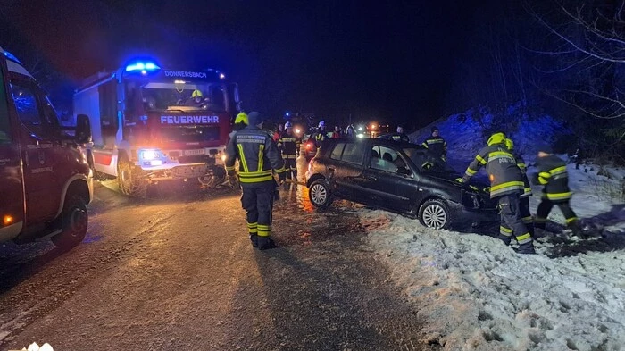 Nachdem ein Auto in Donnersbachwald von der Straße abgekommen war, mussten zwei Feuerwehren ausrücken. Verletzte gab es nicht.