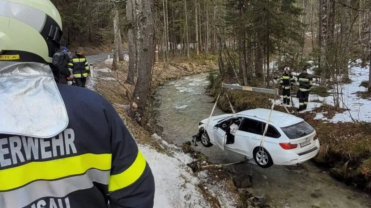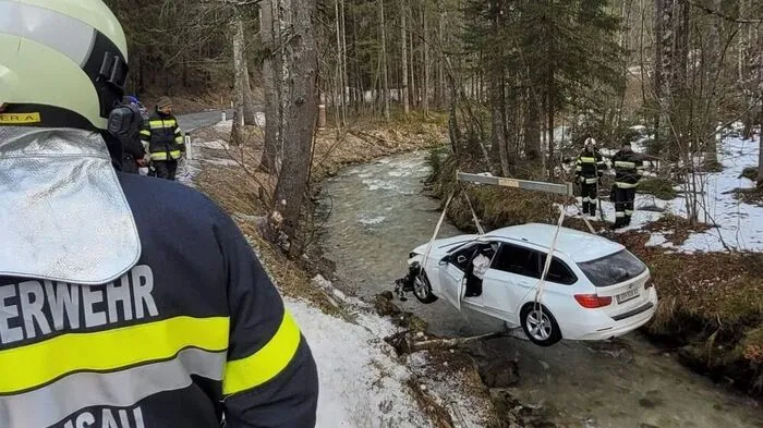 Im Bereich der Rössingstraße landete ein Pkw im Bachbett, der Lenker wurde verletzt. Das Fahrzeug musste mit einem Kran geborgen werden, die Unfallursache wird noch ermittelt.