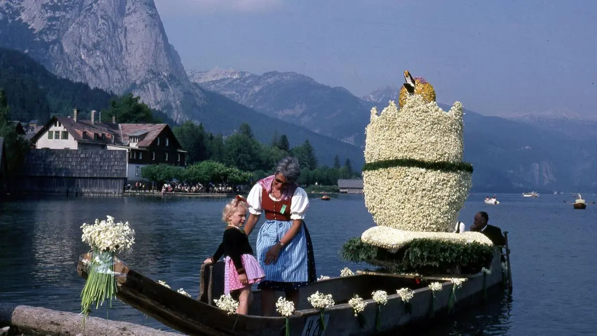 Die weißen Blumen, die bunten Trachten, die atemberaubend schöne Landschaft: Die wichtigsten Zutaten für das berühmte Narzissenfest sind seit 59 Jahren dieselben. Eines springt dann doch ins Auge, wenn man sich die Bilder aus vergangenen Jahren anschaut: Autos. Die Autos, die seit ein paar Jahren nur noch die Figuren aus Bad Aussee zum Bootskorso transportieren, spielten in den ersten 55 Jahren nicht nur eine tragende Rolle, mit ihnen hat sogar alles angefangen: Mit der aus Mariazell importierten Idee, ein Blumenfest um die wunderschöne, elegante Dichternarzisse (Narcissus poeticus) zu organisieren, lud der Fremdenverkehrsverein Bad Aussee vom 28. bis 29. Mai 1960 erstmalig zum Narzissenfest – eine Art Autoweihe, bei der die Fahrzeuge ein Sträußchen Narzisse an den Antennen angebracht waren. 72 Autos waren gleich beim ersten Mal dabei, dazu Trachten- und Schülergruppen. Und auch eine wichtige Person beim Narzissenfest gab es vom Anfang an: Die Königin. Sie wurde damals noch bei einem Ball gewählt, die Besucher konnten „Herzerl“ kaufen und damit ihre Stimmen für die Kandidatinnen abgeben.