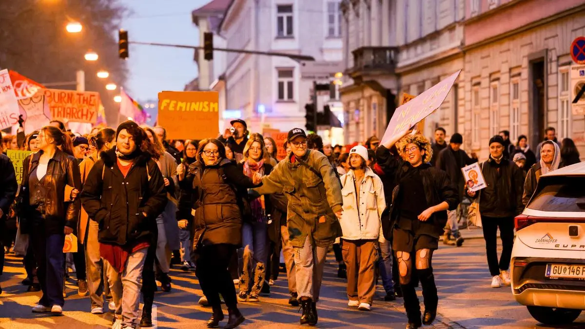 „Die Zeiten gendern sich“, „Patriarchat enteignen“ , „You can‘t spell disapointMENt without MEN“ oder „Mädchen können alles“, als mit Glitzer und Sternen versehenes Schild von einem kleinen Mädchen in die Luft gehalten: Nur einige der Botschaften, mit denen die Demonstrierenden zum feministischen Kampftag gestern in Graz auf die Straße gingen. Die Teilnehmerinnen und auch Teilnehmer (2200 bis 3000 Personen waren es nach Polizei- bzw. nach Veranstalterschätzung) marschierten in einem fast einen Kilometer langen Zug vom Karmeliterplatz über das Glacis bis hin zum Hauptplatz.