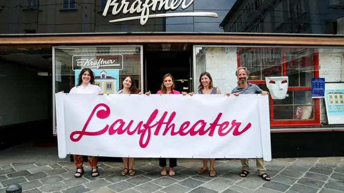 Wie es mit dem Lauftheater nach dem jetzigen Pilotversuch weitergeht, ist noch ungewiss. „Wir arbeiten in Richtung Nachhaltigkeit“, sagt Bonura. „Die Idee ist, dass das Lauftheater-Banner, das jetzt auf dem Kunst Klub Kräftner hängt, an verschiedenen Orten wieder auftauchen wird.“ Auch soll das derzeit lose organisierte „Freundinnenkollektiv“ in Zukunft eine rechtliche Form, etwa in Form eines gemeinnützigen Kunstvereins erhalten.