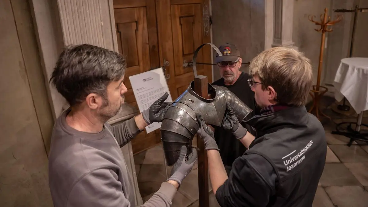 Erst im vergangenen Juni wurde der Steinerne Saal mit einem Bildnis, das die Erhebung Steiermarks zum Herzogtum darstellt, bereichert. Jetzt bekommt die historisch so bedeutsame Räumlichkeit eine weitere Besonderheit: Eine Landsknecht-Rüstung aus dem 16. Jahrhundert.