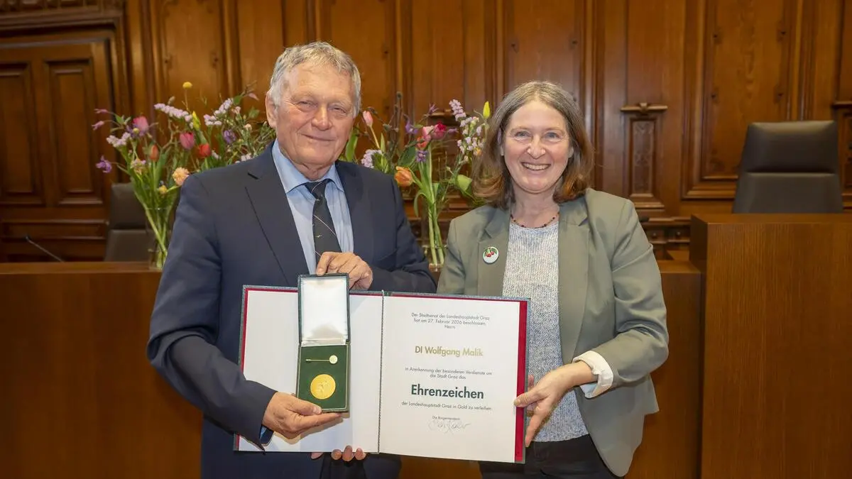 Nach 25 Jahren hat Wolfgang Malik die Spitze der Stadt-Tochter „Holding Graz“ verlassen: Im Rathaus wurde er gefeiert und mit dem Goldenen Ehrenzeichen der Stadt Graz ausgezeichnet.