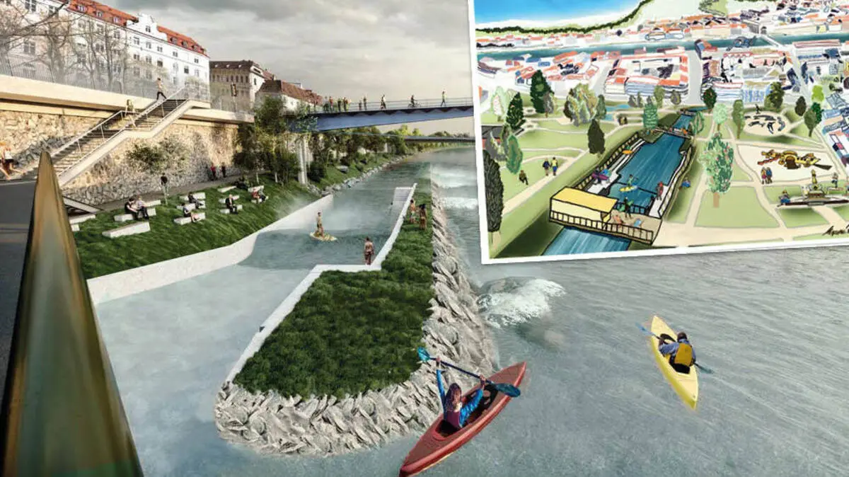 Soll Graz eine künstliche Surfwelle als neue Freizeitangebot in die Mur bauen? Eine Mehrheit in einer repräsentativen Umfrage spricht sich dafür aus. Koalition plant ein Welle im Volksgarten.