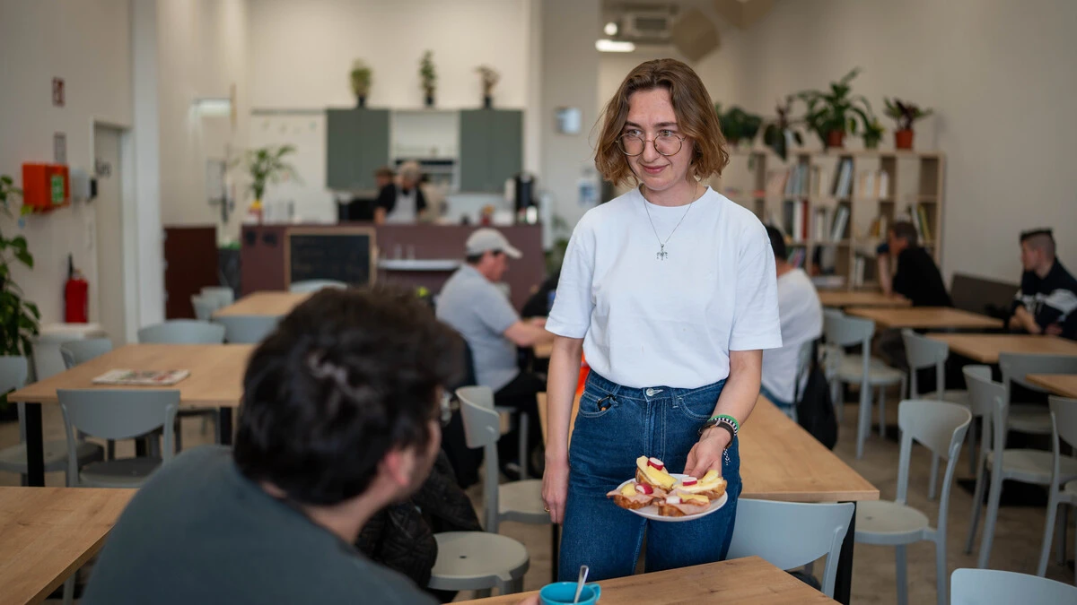 Kaffee und ihr Strickzeug – zwei Dinge, die die 21-jährige VinziLife-Bewohnerin Sabi liebt
