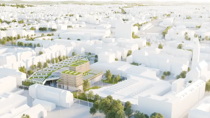 Das Areal bei der Remise wird um Büroräume, eine knapp 11.000 Quadratmeter große Photovoltaikanlage auf dem Dach und eine Abstellhalle für größere Bims erweitert