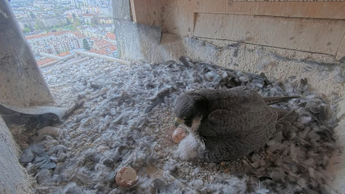 Besonders spannend ist derzeit ein Blick ins Nest der Grazer Wanderfalken per Webcam. Vier Eier lagen heuer im Nest. Das letzte Küken schlüpft voraussichtlich am Mittwoch.