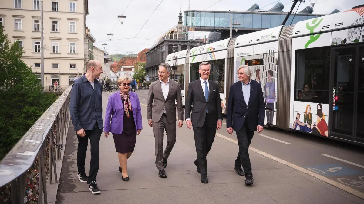 Künstler Tom Lohner, Landeshauptmann a.D. Waltraud Klasnic, Kurt Hohensinner, Innenstadt-Unternehmer Klaus Weikhard und der ehemalige Med-Uni-Rektor und Nationalrat Josef Smolle