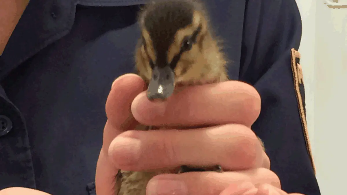 Mittwochabend entdeckte Inspektorin Vanessa Kandolf eine Baby-Ente vor der Polizeistation. Da die "Familie" des Tieres unauffindbar war, versorgte sie das geschwächte Tier.