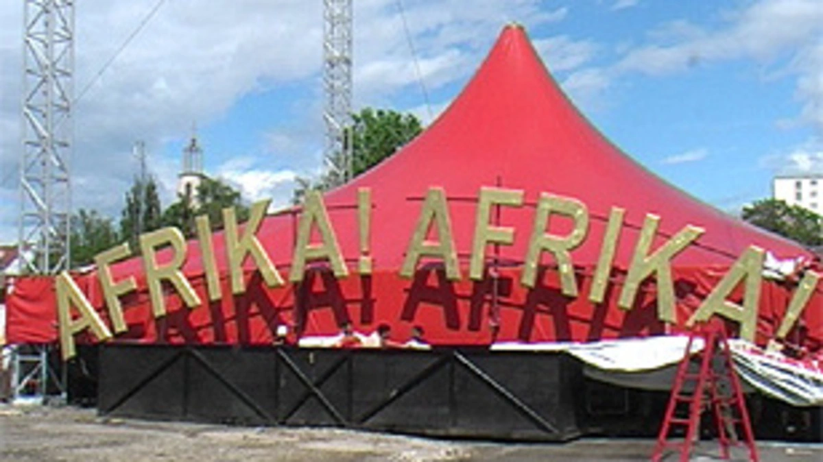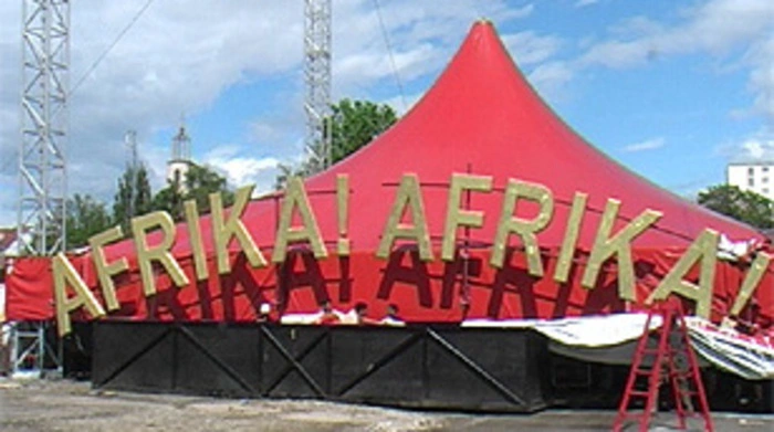 "Afrika! Afrika!" ist startbereit. Letzter Lokalaugeschein in der fabelhaften Grazer Zeltstadt vor der großen Premiere am Dienstagabend.