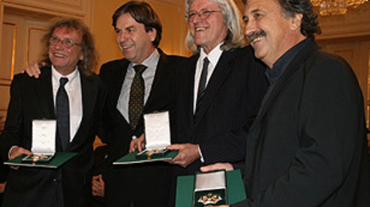 Die Ausnahmemusiker Gert Steinbäcker, Günter Timischl und Helmut Röhrling alias Schiffkowitz konnten am Mittwoch in der Grazer Burg das Große Ehrenzeichen des Landes Steiermark entgegennehmen. "Wir sind gerührt", dankte Schiffkowitz im Namen der "Vorzeige-Steirer", wie Voves "STS" nennt. "Das kommt davon, wenn man jahrelang stur wie Esel seinen Weg geht!"