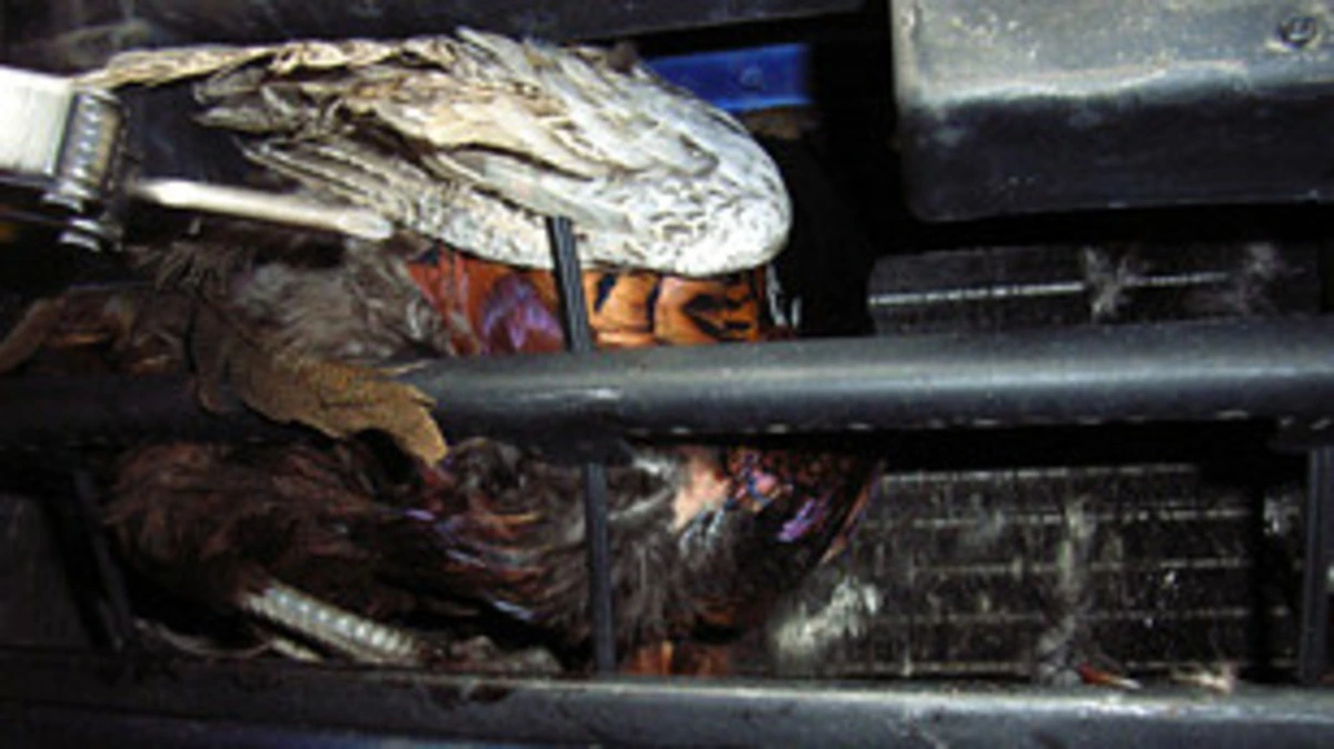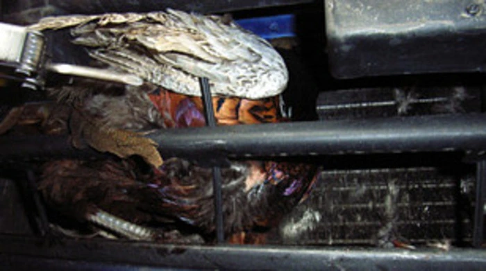 Tierrettung befreite Fasan aus Kühlergrill eines parkenden Pkws in Graz.