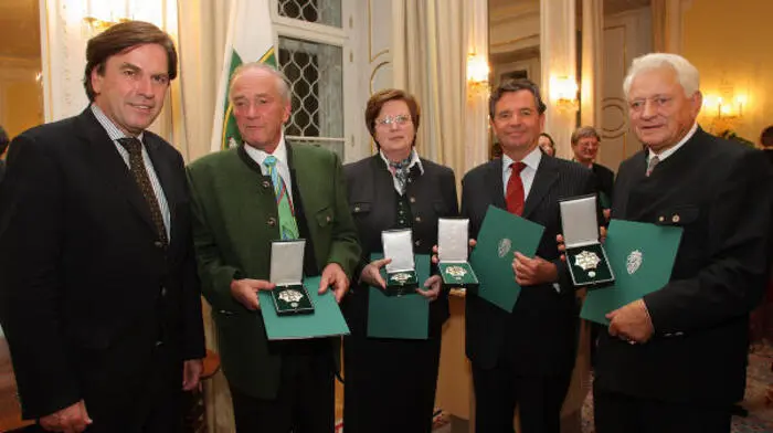 Im Weißen Saal der Grazer Burg fand am Mittwoch die Verleihung von Großen Ehrenzeichen statt. Unter andererm wurden der World Choir Games-Organisator Baldur Heckel und Wolf Chibidziura, Leiter der Baubezirksleitung Leibnitz, ausgezeichnet.